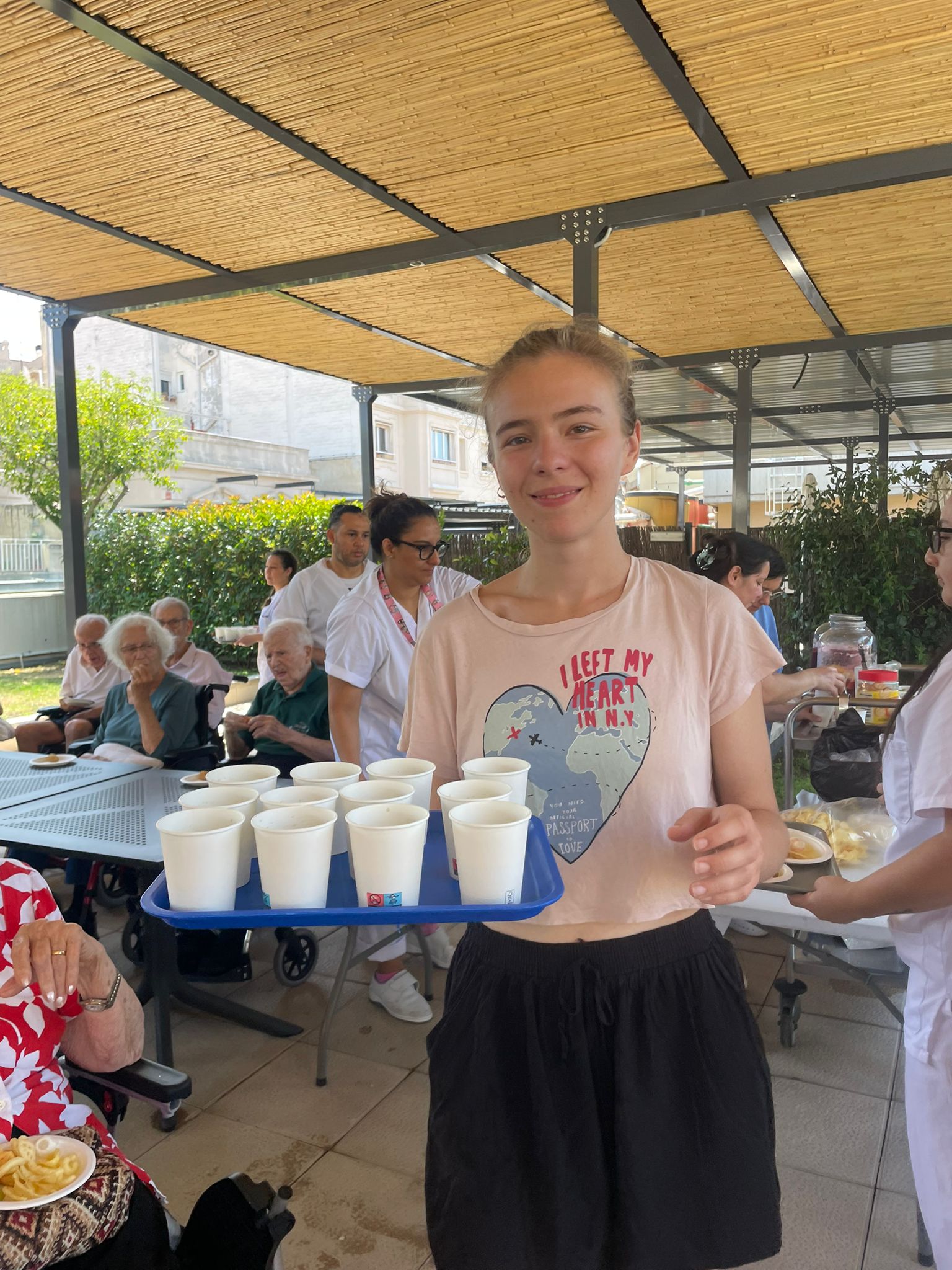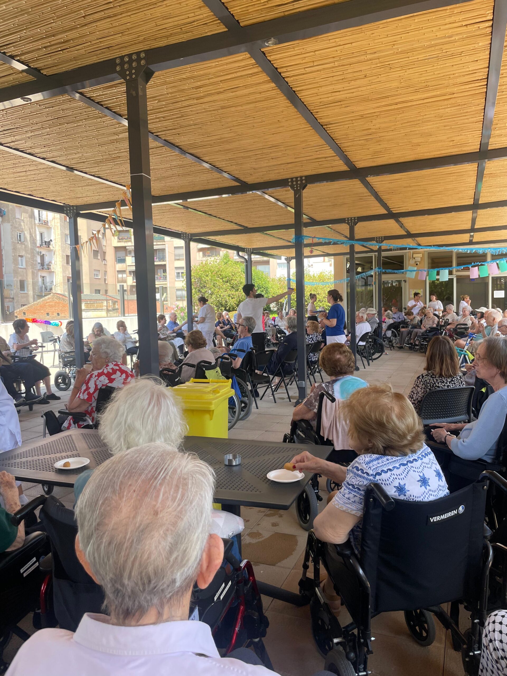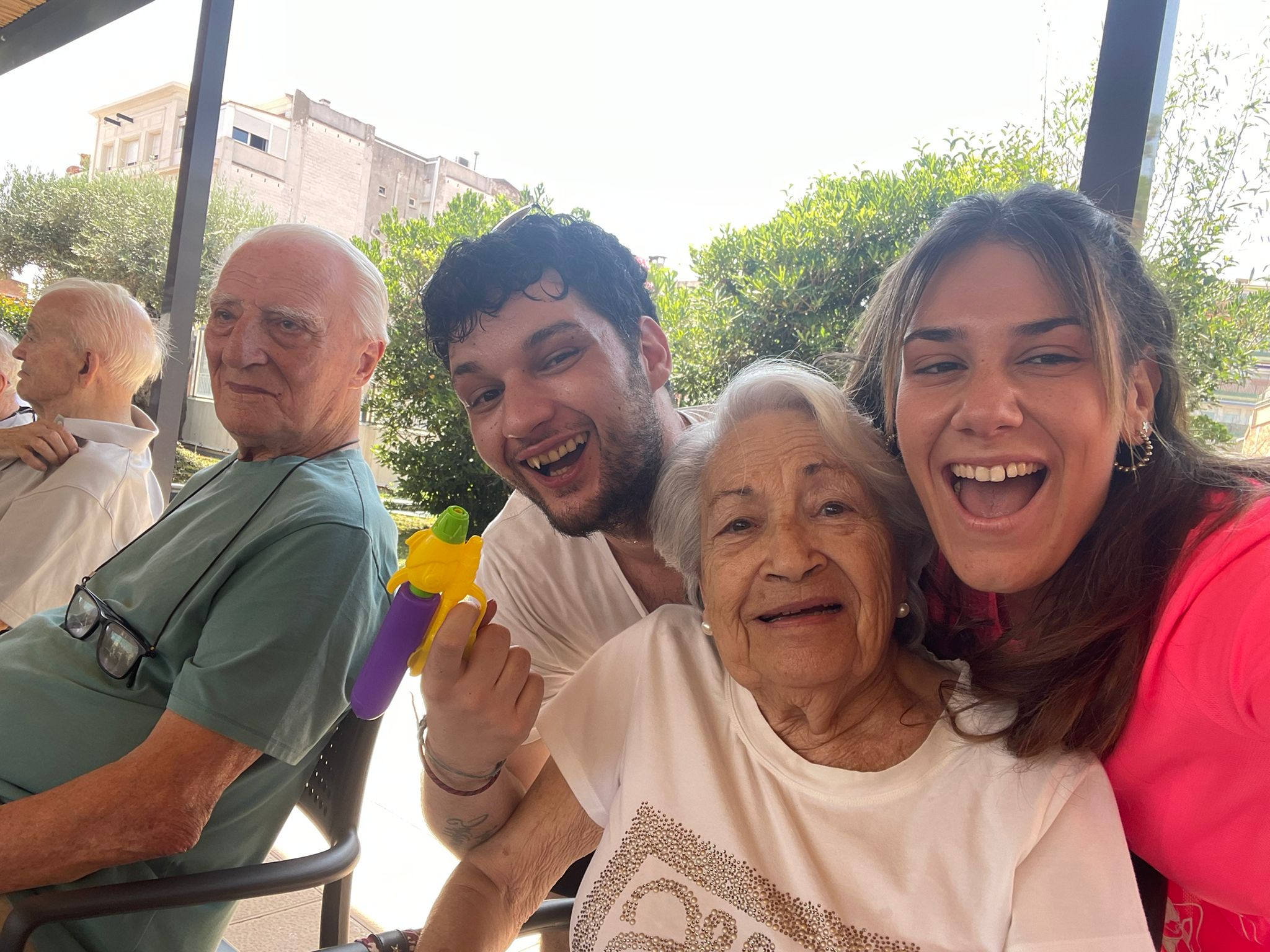 Des del matí, vam demanar als residents que es preparessin amb roba còmoda i fresca, crema solar i gorra. Tot i així, la calor era intensa… així que vam repetir una de les activitats preferides: una guerra d’aigua amb galledes i pistoles! Va ser una bona manera de refrescar-nos i passar una estona divertida.